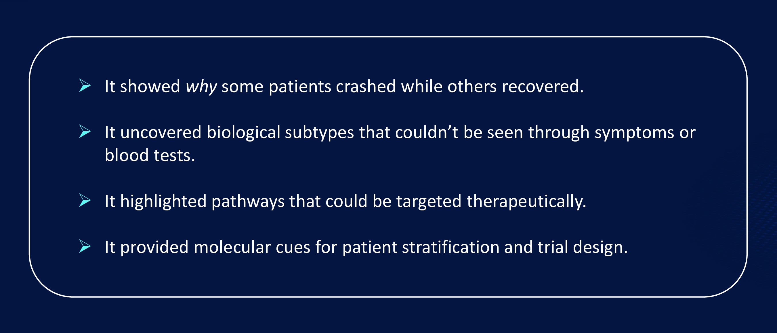 It exposes the biology driving disease progression long before clinical symptoms make it obvious